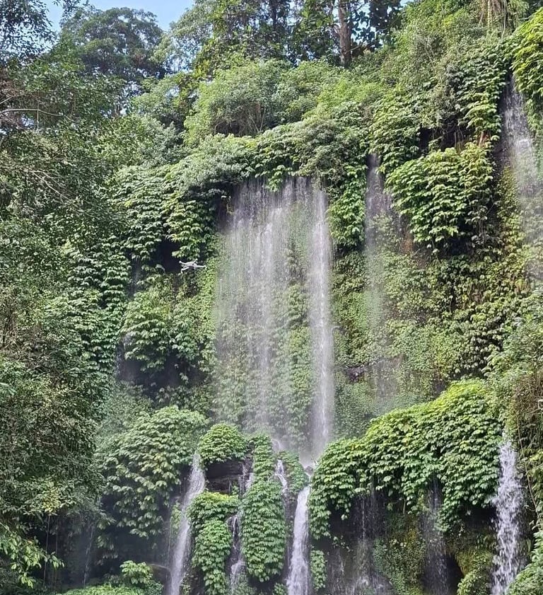 Air terjunnya mengalir seperti kelambu atau tirai yang berwarna-warni berkat pelangi yang muncul terlihat sangat mengagumkan. Nikmati kesegaran Airnya yang bersumber dari Gunung Rinjani dan kesegaran udara Hutan Tropis yang dapat menyehatkan badan.